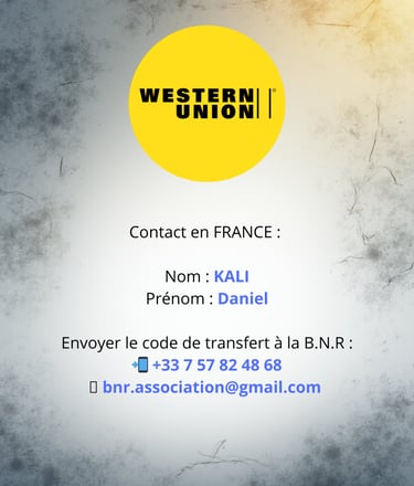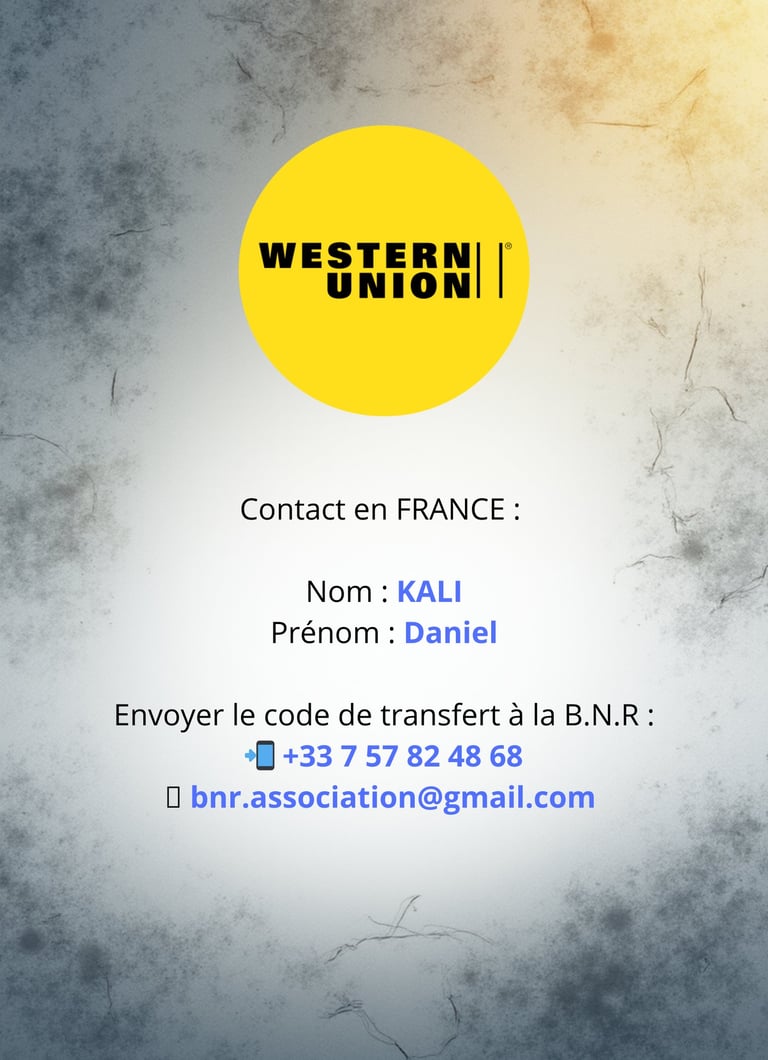 Merci d’utiliser les coordonnées ci-dessus pour effectuer vos dons via Western Union.